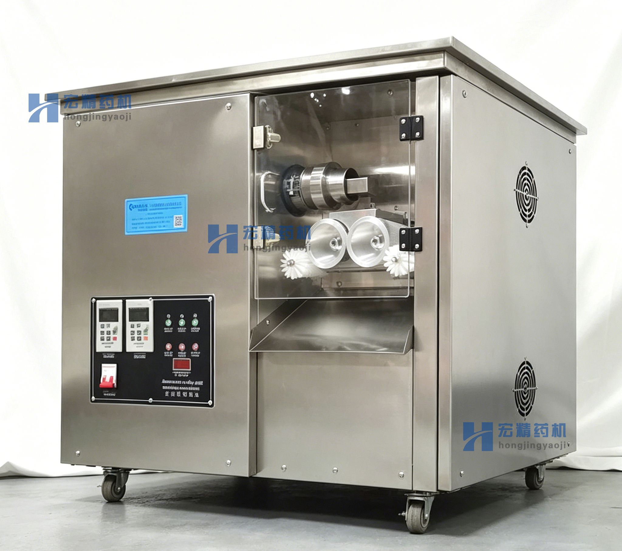 采用螺旋挤压出条与刀轮搓丸一体化结构。物料经搅拌混合后直接进入出条系统,挤出光滑均匀的药条,随即进入制丸机构完成切断和搓圆,减少了人工干预环节。